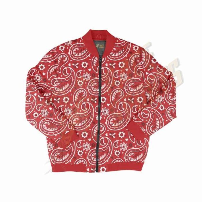“Custom Satin Bomber Jacket – Men’s Quilted Black & Red Bandana”